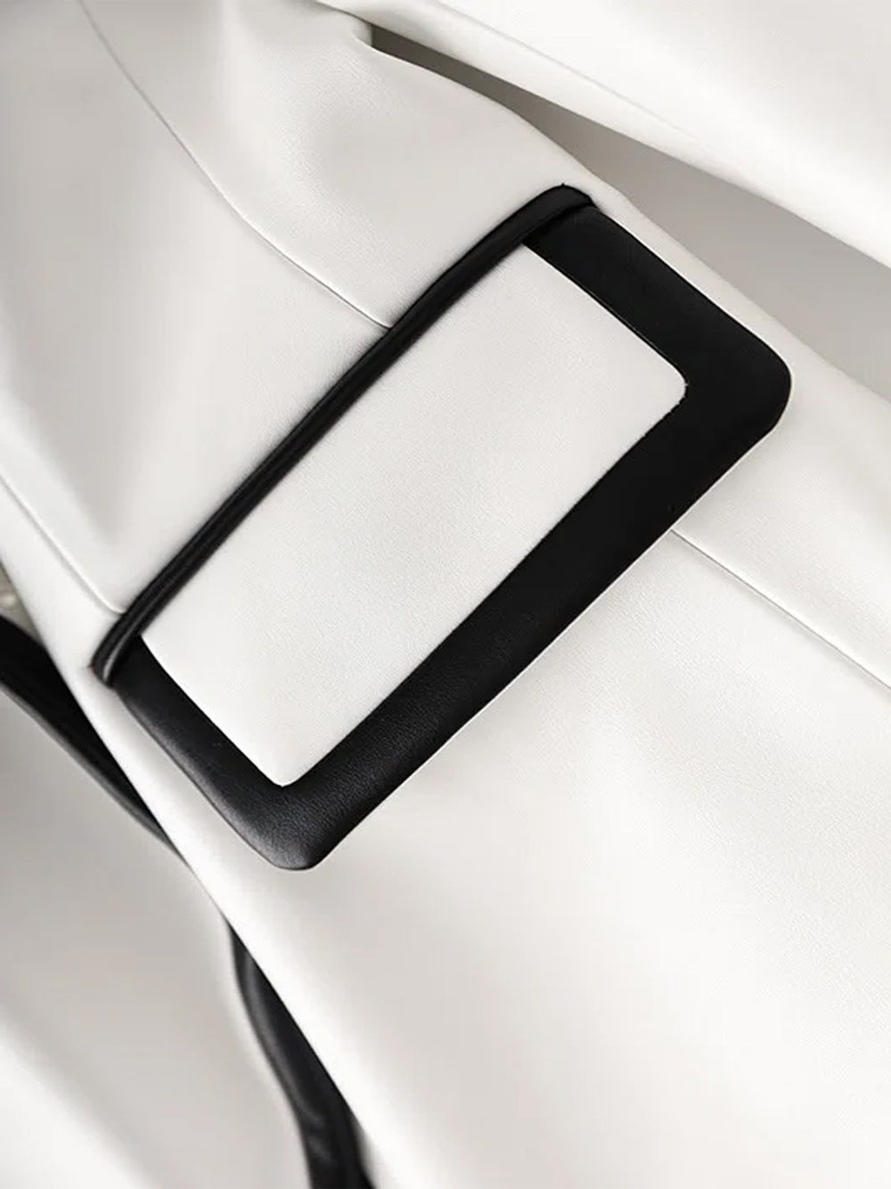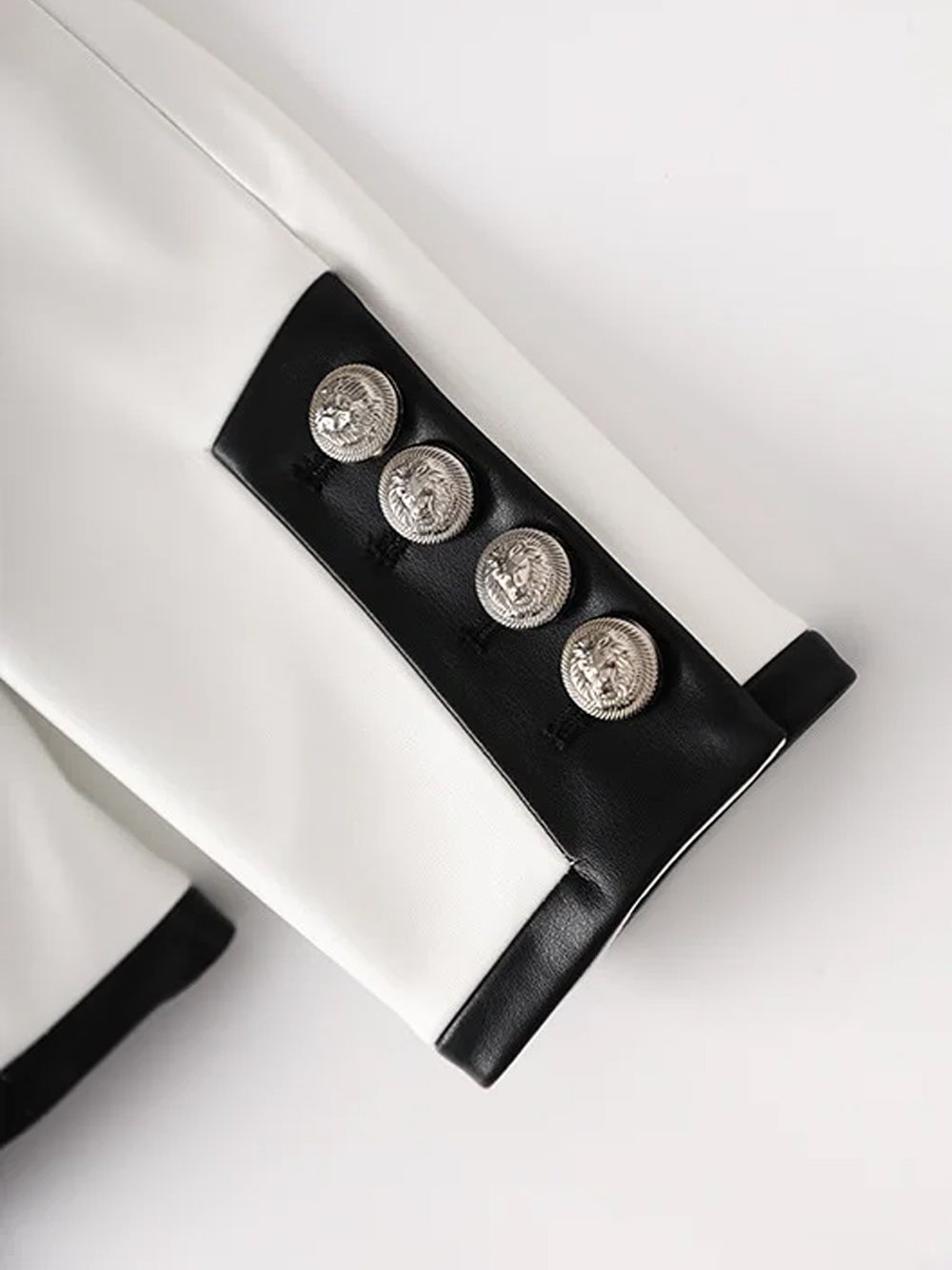 - Style № ZC_Double Breasted Leather Contrast Blazer