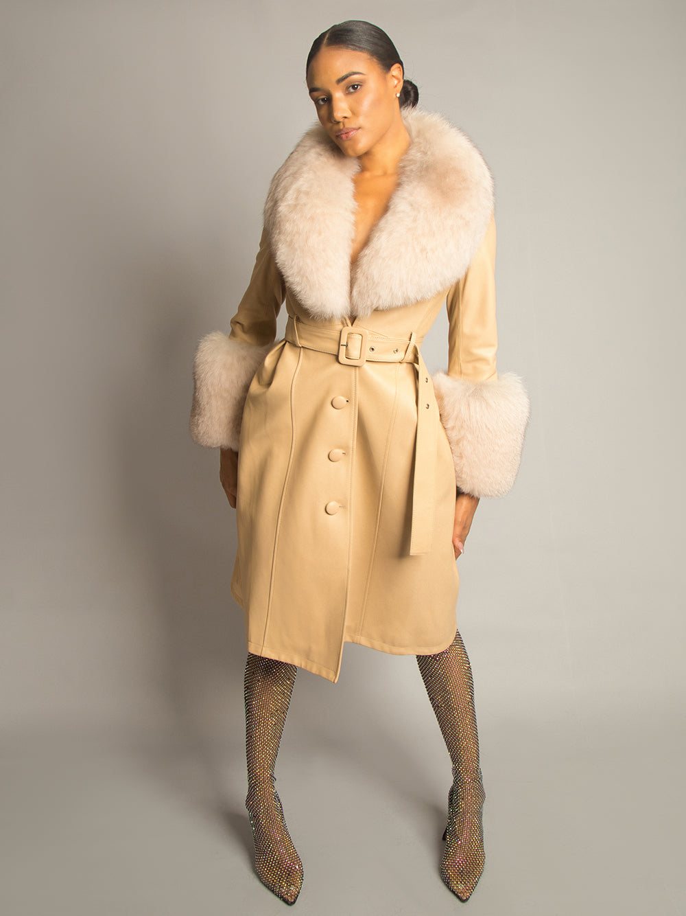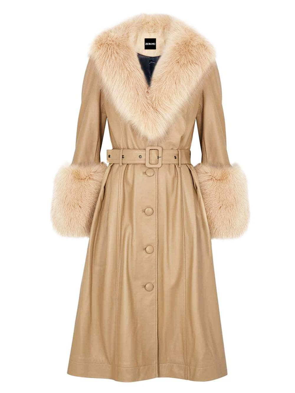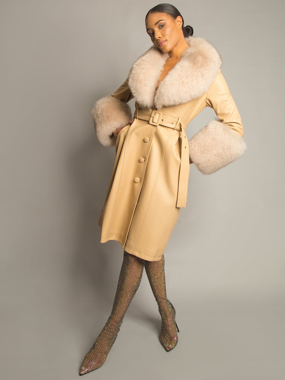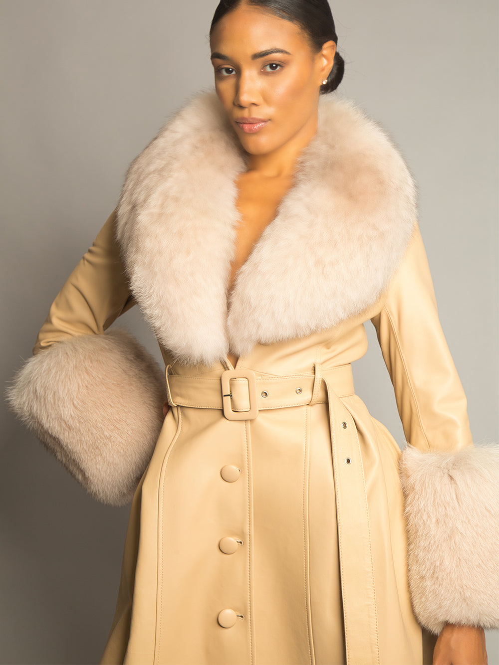 - Style № ZC_NYC23_Foxy Leather Coat w/ Fox Fur In Tan