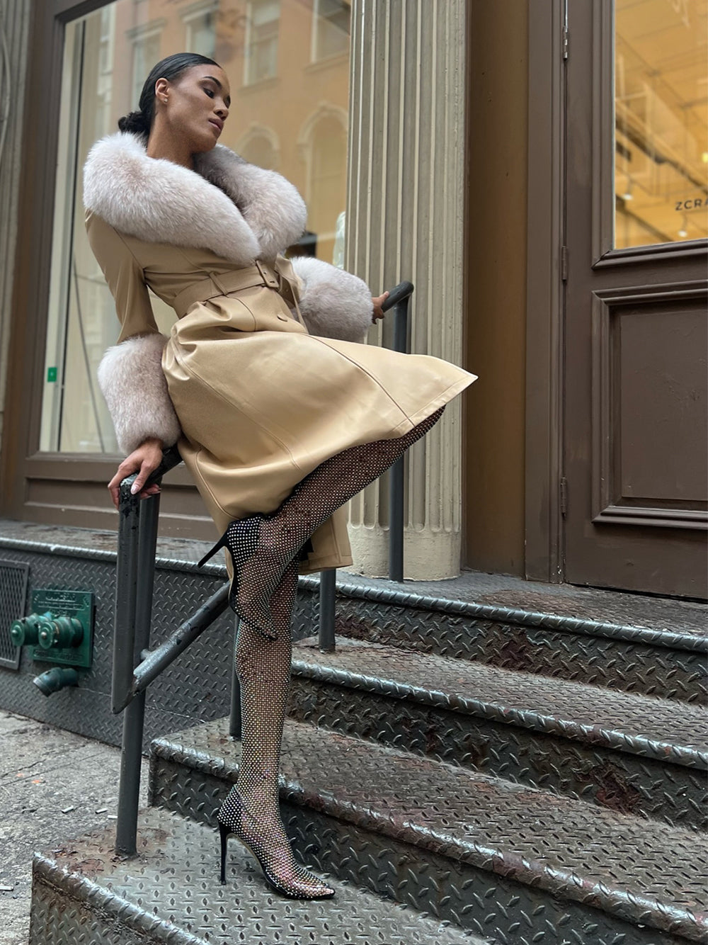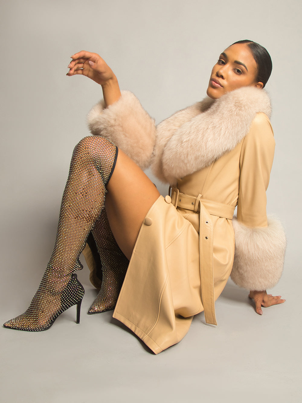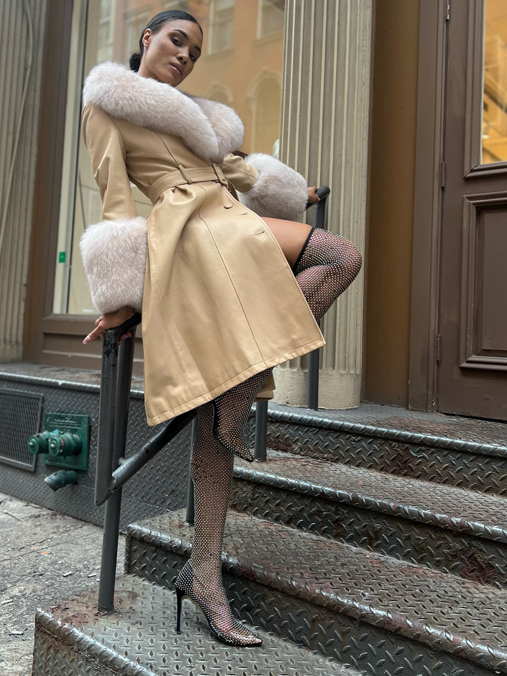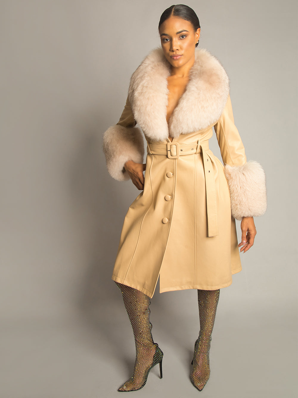 - Style № ZC_NYC23_Foxy Leather Coat w/ Fox Fur In Tan