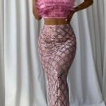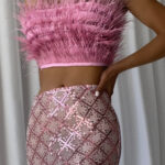Feather Top & Sequin Tulle Skirt – 2 Pieces Set