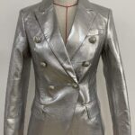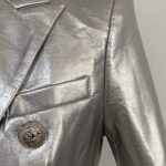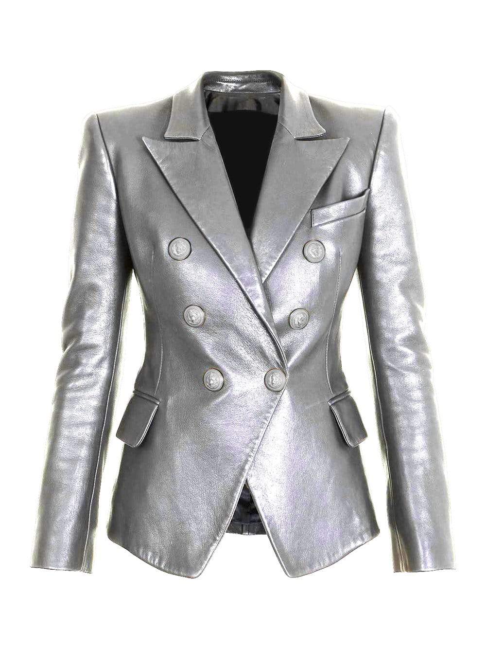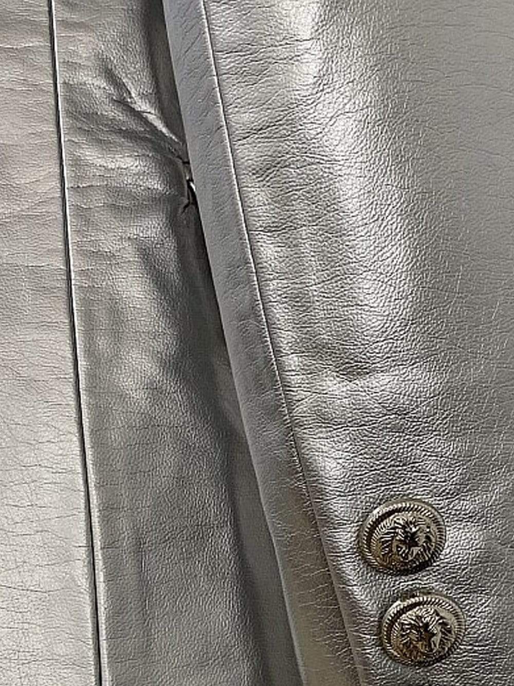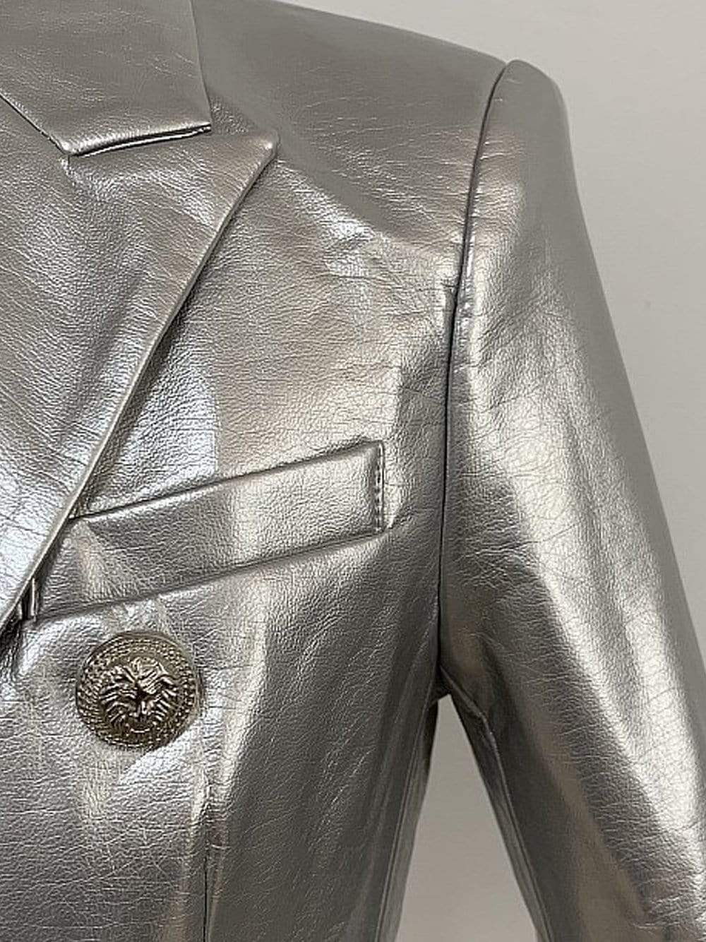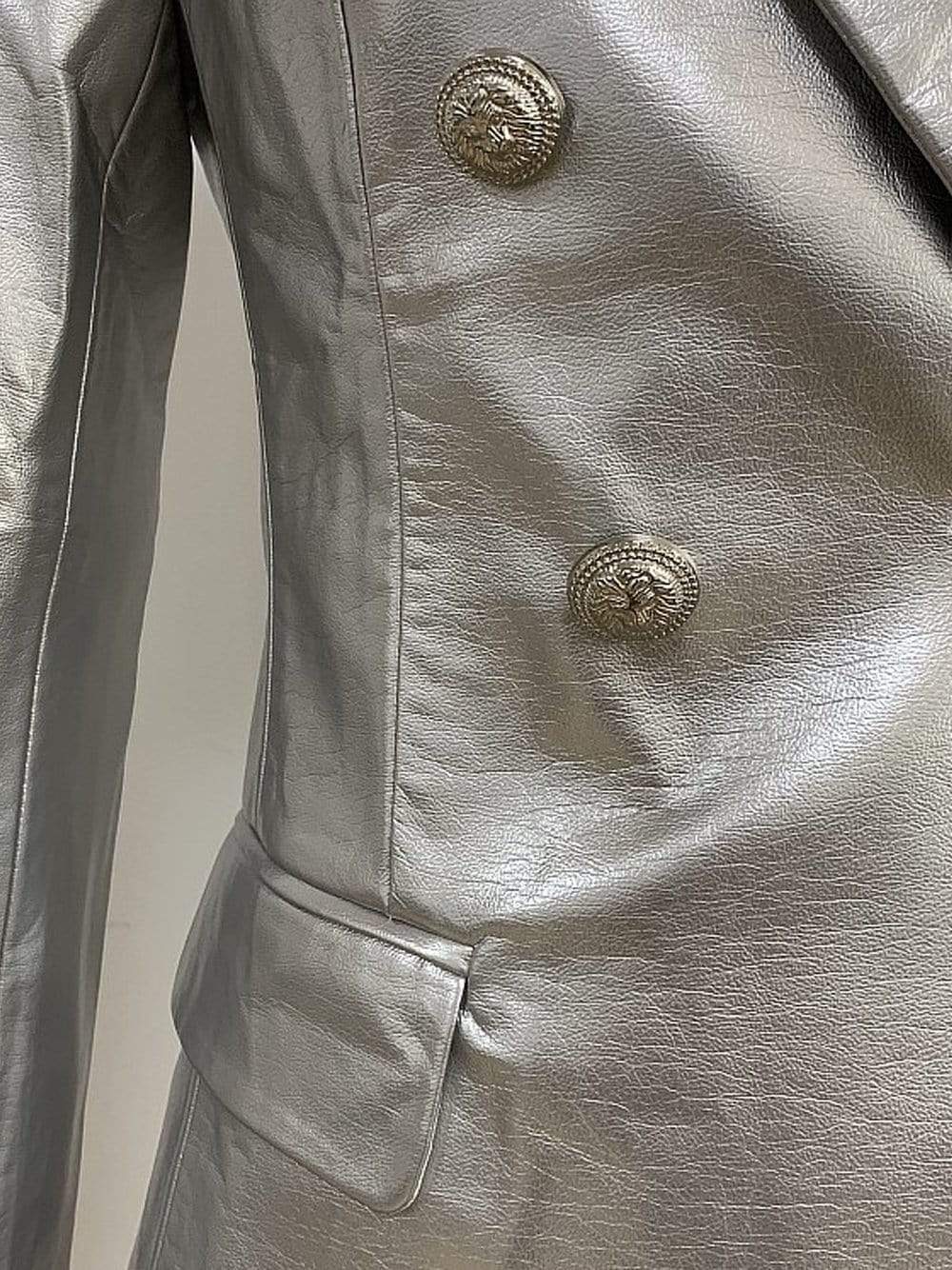UNTITLED Double-Breasted Leather Blazer in Silver